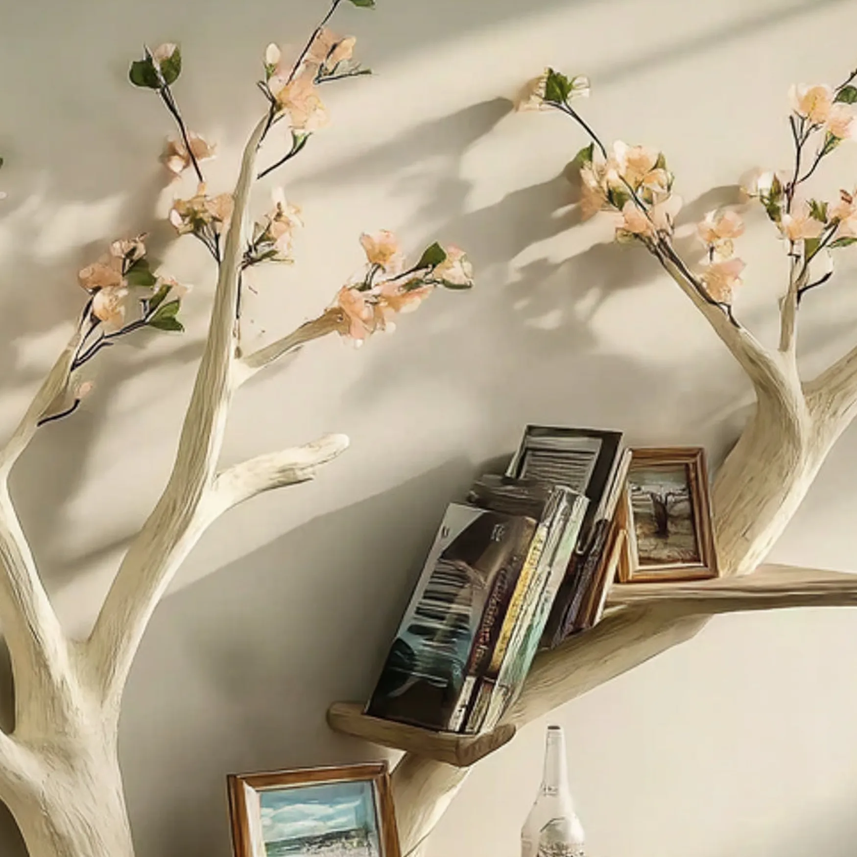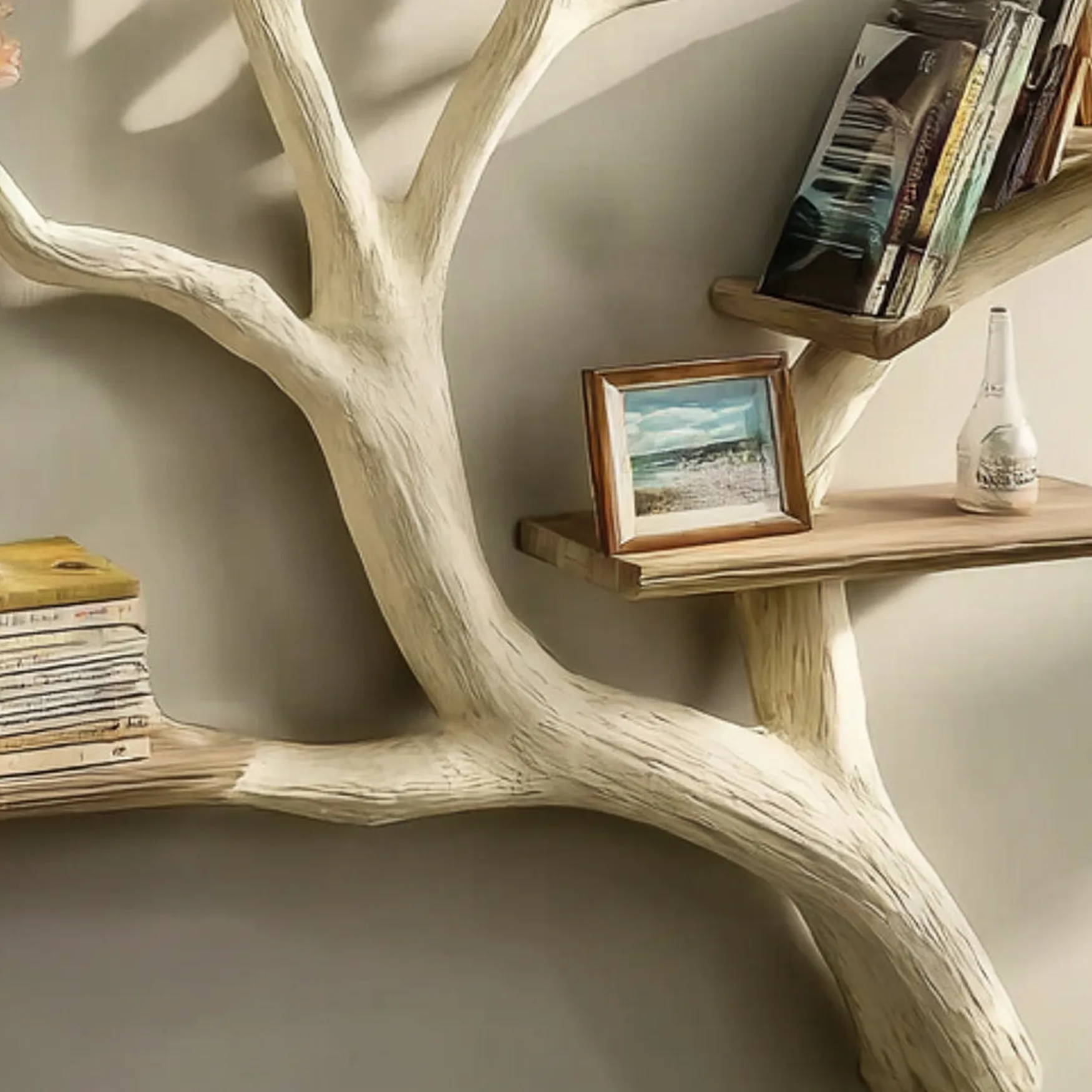 Wooden Tree Wall Shelf Design Sculptural Floating Artistic Decor